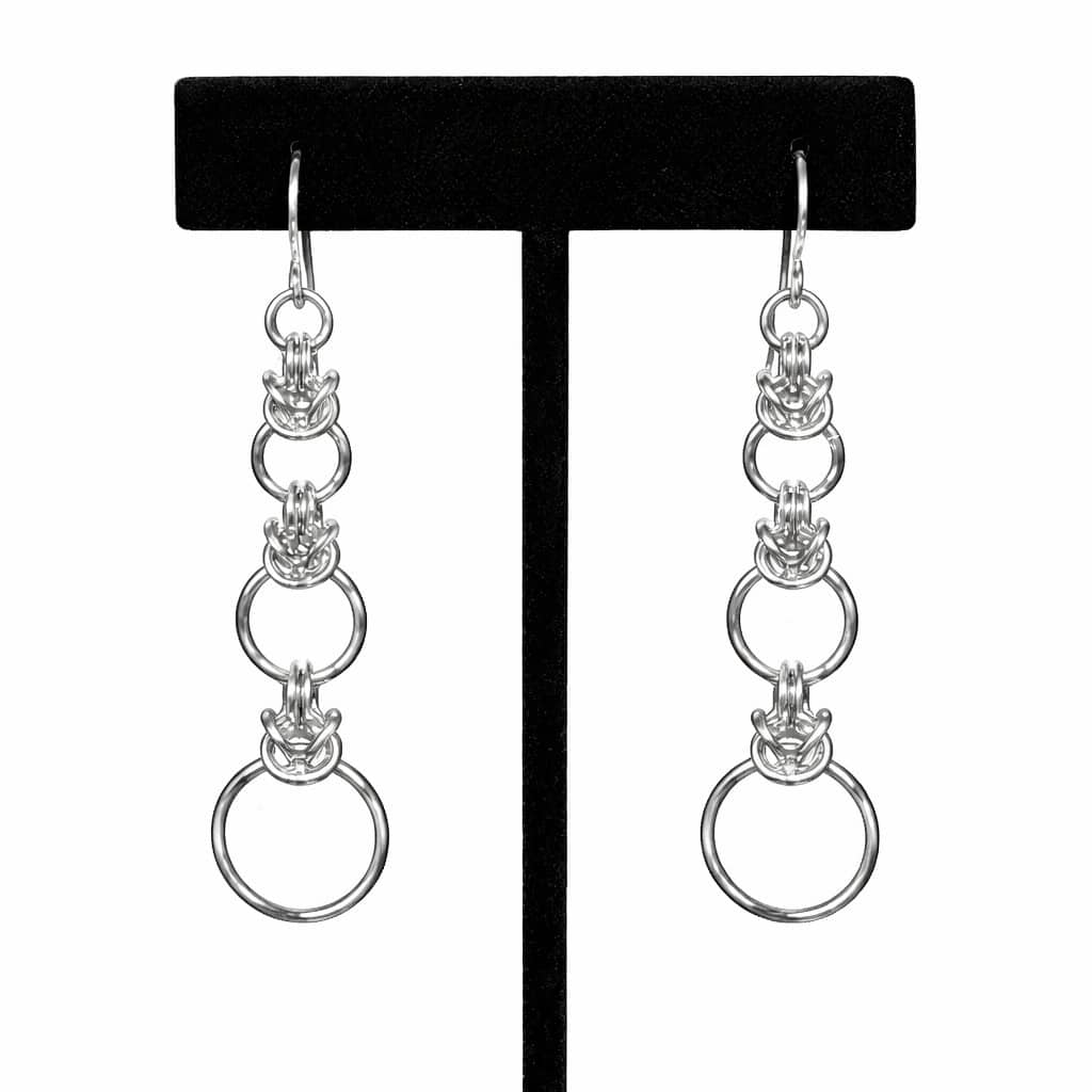 These graduated Byzantine weave earrings are handcrafted one ring at a time from luminous Argentium® Silver, prized for its bright finish and exceptional tarnish resistance.